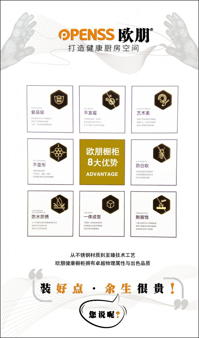 什么才是理想的厨房?是华丽的台面,还是高端的电器?欧朋不锈钢厨柜给出的答案是:理想的厨房,首先应该是一个让人安心的健康空间,然后才是一个让人愉悦的美学空间。基于这一理念,欧朋正式发布“五星级厨房”标准体系,从健康安全、耐用抗造、卫生易洁、环保可持续、省时省心五个维度,为中国家庭重新定义健康厨房的新标准。