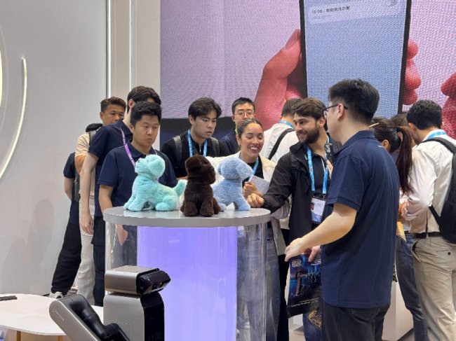 AI陪伴机器人“毛团儿”内置多模态情感交互系统,具备5种性格、7种情绪及21级情绪梯度调节功能,通过语音、表情与动作与用户深度互动,适配全年龄段陪伴需求。现场采购商对其情感引擎技术评价颇高,认为有望开辟家庭陪伴机器人新蓝海。