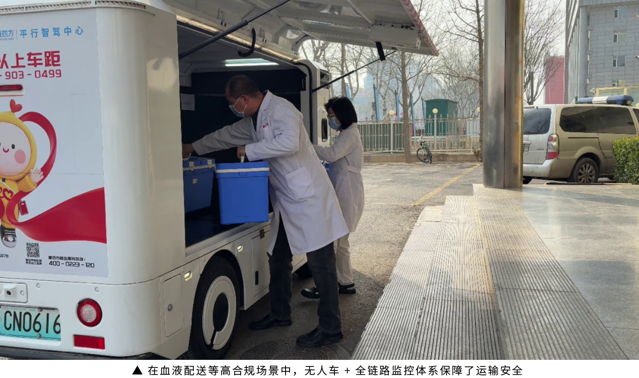 血液中心:血液运输,充分发挥无人配送24小时运力优势,保证不断档,遇到车辆故障,立刻有人车兜底,保障临床用血需求。