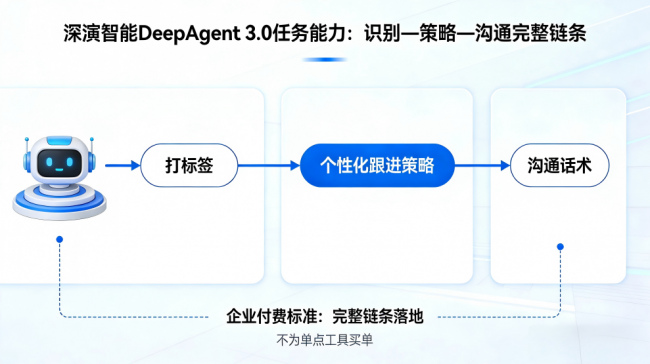营销场景千差万别:电商需要个性化推荐,社交平台需要KOL效果验证,出海企业需要跨域用户管理……深演智能的企业级AI智能体平台DeepAgent3.0覆盖七大领域、二十余款智能体,针对不同场景提供端到端的解决方案。