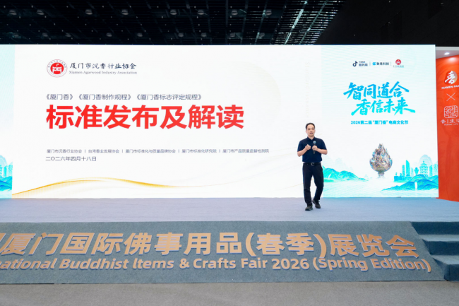 导语:2026 年 4 月 18 日,中国厦门国际佛事用品(春季)展览会上,备受瞩目的首份天然原态香制品三项标准——《厦门香》《厦门香制作规程》《厦门香标志评定规程》,由厦门市沉香行业协会、台湾香业发展协会、厦门市标准化与质量品牌协会、厦门市标准化研究院、厦门市产品质量监督检验院五大机构联合正式发布。这标志着天然原态香制品迈入标准化、规范化的新纪元。厦门香专业委员会主任、非遗传承人、大红康香制品主理人陆广忠先生作为标准的核心起草人之一,在会上作专业解读。