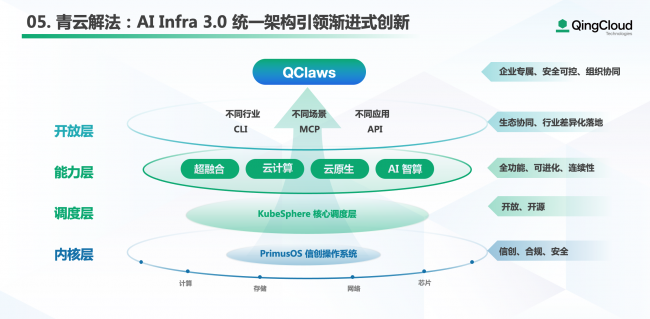 面对产业共性挑战,青云科技以 AI Infra 3.0 统一架构引领渐进式创新,打造兼容历史、支撑未来、安全可控、开放弹性的 AI原生基础设施底座。