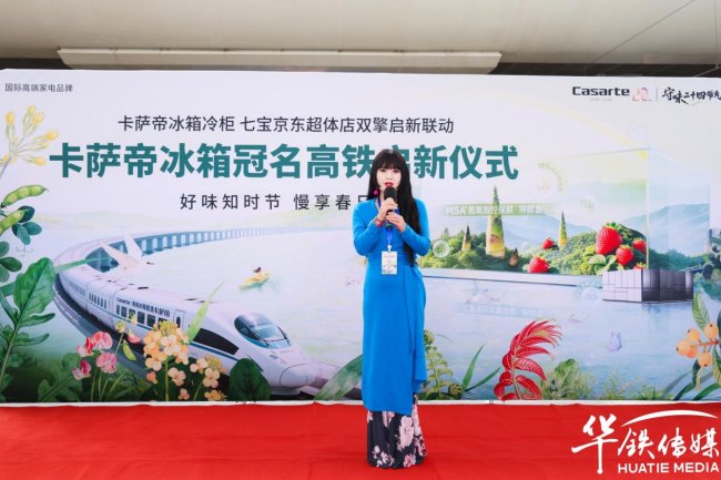 上海海尔智家营销部长刘杨现场致辞表示,此次卡萨帝冰箱与中国高铁强强联手,是大国速度与高端品质的完美契合。飞驰的高铁将化作流动的品牌窗口,把卡萨帝冰箱极致储鲜、高端厨居的生活理念,传递至全国各个城市,走进更多家庭。