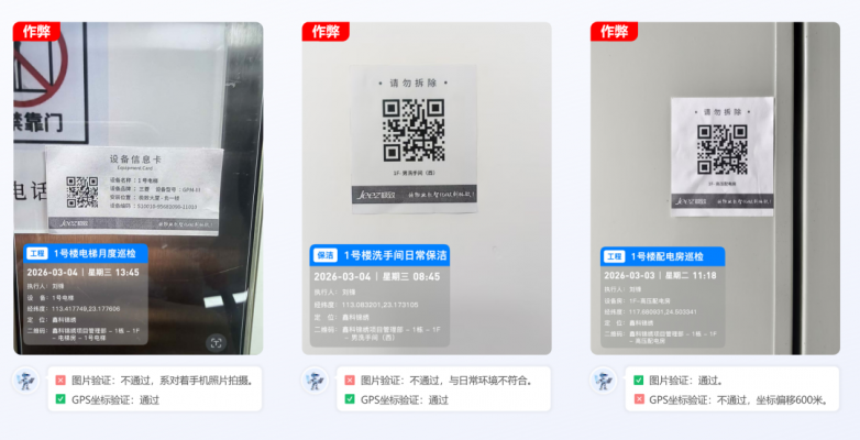 结合国产大模型豆包、千问、腾讯元宝等卓越的图片和视频识别能力,用户完全自定义任意场景的图片或视频AI检测提示词,实现真AI图片和视频异常检查与预警能力,全面替代和超越传统模式识别或边缘服务器的固定场景图片检测能力,通过AI防伪巡检员以“图片+GPS双维度防伪校验”,自动识别虚假拍照、坐标偏移等作弊行为,杜绝虚假巡检,保障“人到现场、事做实处”;在AI视频巡检层面,通过按预设时段、频次自动抓取视频源,智能识别消防通道堵塞、垃圾乱堆等多类风险,实时告警、自动派单,大幅提升巡检效率与安全。