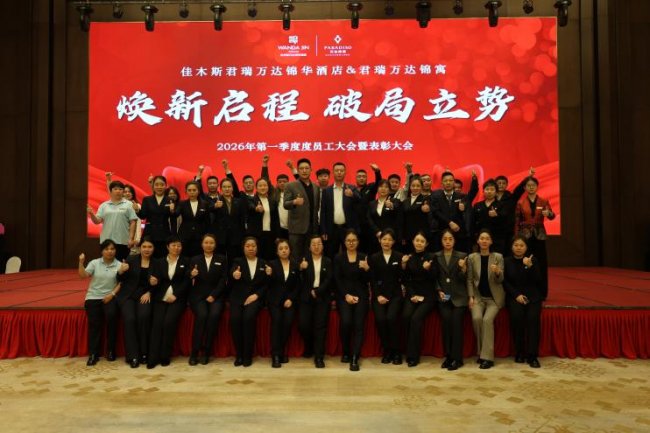 春和景明,万象更新。2026年4月,佳木斯万达锦华酒店隆重召开2026年第一季度员工大会暨第一季度员工生日会。酒店全体员工齐聚一堂,总结一季度奋斗成果,擘画二季度发展蓝图,并为第一季度过生日的员工送上温馨祝福。君诚地产董事长管军先生亲临现场并发表重要讲话,为酒店新一季度的征程注入强劲动力。