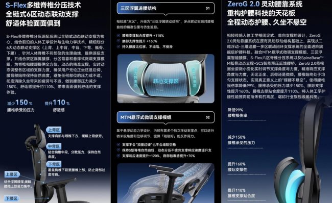 1、黑科技级护腰系统:不是靠一块腰靠,而是全链路联动支撑