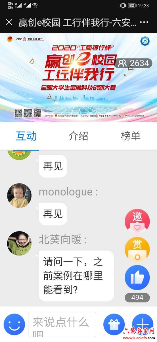 工商银行六安分行结对皖西学院开展2020年“工商银行杯”大学生金融科技创新大赛 线上直播宣讲