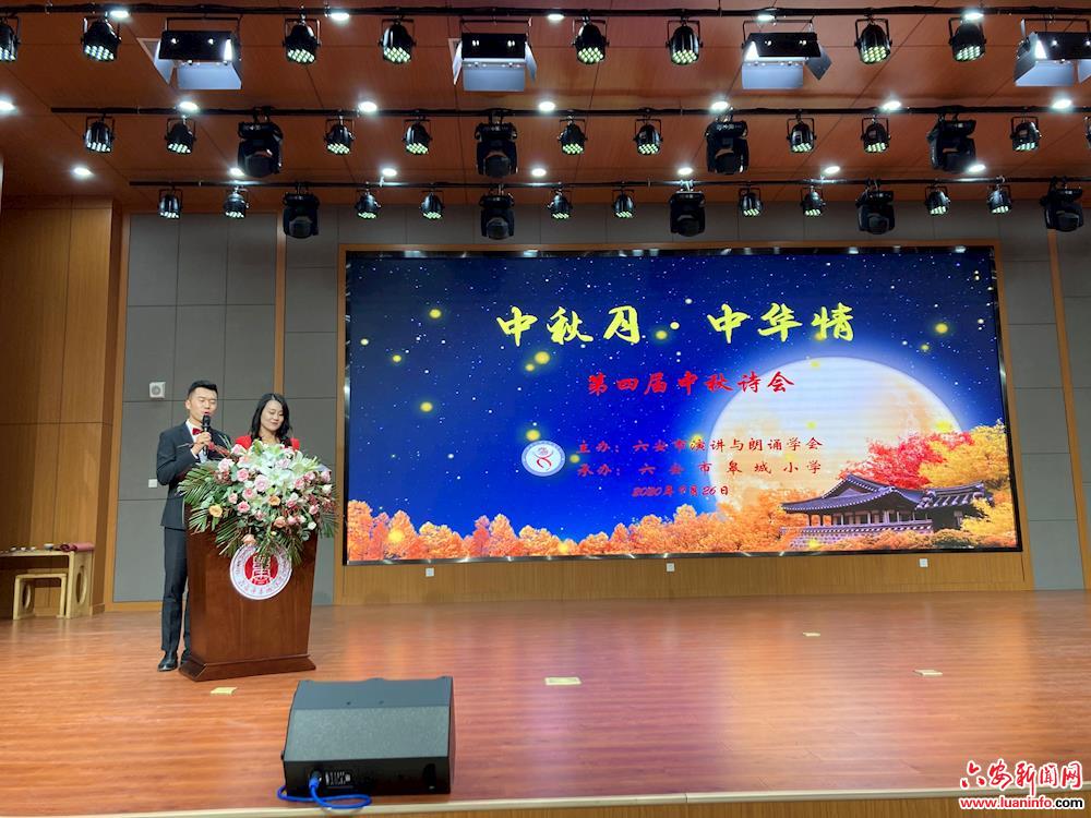 又是一年中秋月,又是一个团圆日。9月26日,为迎接中秋、国庆双节来临,六安市演讲与朗诵学会在皋城小学举行"中秋月 中华情"第四届中秋诗会。 十多位会员代表激情演绎诗朗诵,《月是故乡明》《中秋佳节月色明》《又是一年中秋月》让人心怀故土难舍丶乡愁常念;《脊梁》《宝贝,你不要哭》,让观众感受到为祖国强盛丶人民健康而奋斗的精神力量;还再现了经典传统诗词歌赋《滕王阁序》《将进酒》《岳阳楼记》等,彰显着传统文化的魅力,更有激情澎湃的祖国颂歌《我和我的祖国》《美丽中国》《月光下的中国》等。(皖西日报融媒体记者 徐缓 摄)