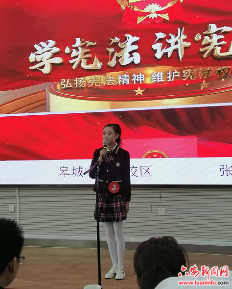 2020年9月26日,“说宪法讲宪法”主题演讲比赛在六安市一中东校区举行。本次比赛,旨在倡导中小学生学法,知法,守法,用法。此次比赛分为小学组,初中组,高中组共三十余人。其中,皋城中学西校区八四班张娜在初中组比赛中获得了六安市二等奖的好成绩。这次比赛不仅为同学们提供了一个展示自我,提升自我的舞台,而且锻炼了同学们的演讲水平,同时让更多人了解宪法,学习宪法,尊重宪法,对日后的学习生活产生积极影响。