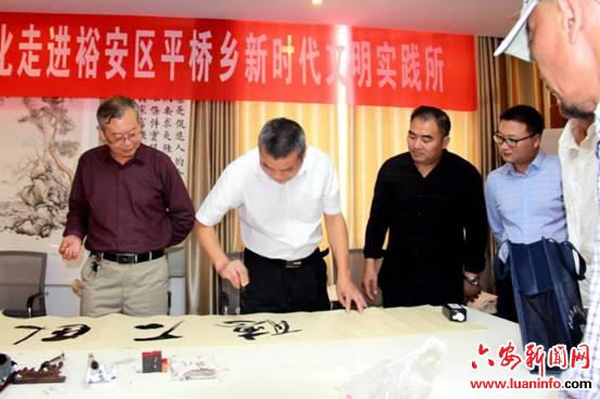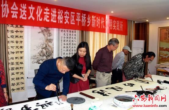 9月27日,六安市书法协家会一行15人在秘书长王卫军的带领下,送文化走进裕安区平桥乡新时代文明实践所。裕安区书法家协会主席王永济;秘书长王进如及平桥乡部分书画爱好者参加了此次文化惠民活动。