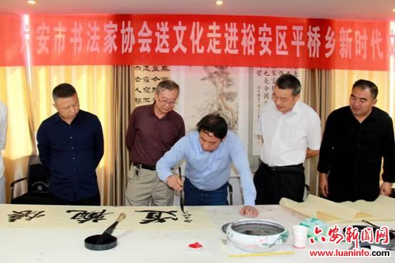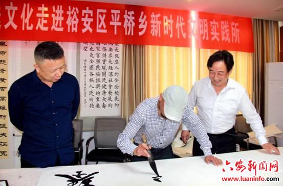 本次活动在平桥乡新时代文明实践所三楼进行,市书协书法家们挥毫泼墨,让现场的书法爱好者感受书法的魅力。六安市书法家协会此次送文化小分队活动是连接书法家与社区居民的纽带,以书法之意,提升文化品位,增强文化自信,并用文化的力量构筑人们的美好精神家园,通过送文化活动提升广大人民群众的获得感和幸福感。活动进行2小时,为平桥乡创作30幅精品力作。(施申财)