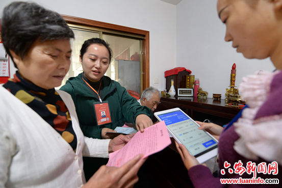 10月14日,金安区东市街道七里站社区人口普查工作人员持证入户在居民家中进行信息摸底。“大国点名,没你不行”。据了解,第七次全国人口普查入户工作从10月11日开始后,金安区东市街道七里站社区积极采取向居民发放《致住户的一封信》、电子屏、广播、现场登记等形式,向广大公众解读好人口普查政策和制度,使普查的意义、政策和法规深入人心。据悉,此次全国人口普查采取电子化数据采集方式开展普查登记,同时倡导普查对象自主填报的方式,鼓励大家使用手机等移动终端自行申报个人和家庭信息,确保人口普查一个都不少,圆满完成第七次全国人口普查的各项任务。(皖西日报融媒体记者 田凯平 摄)