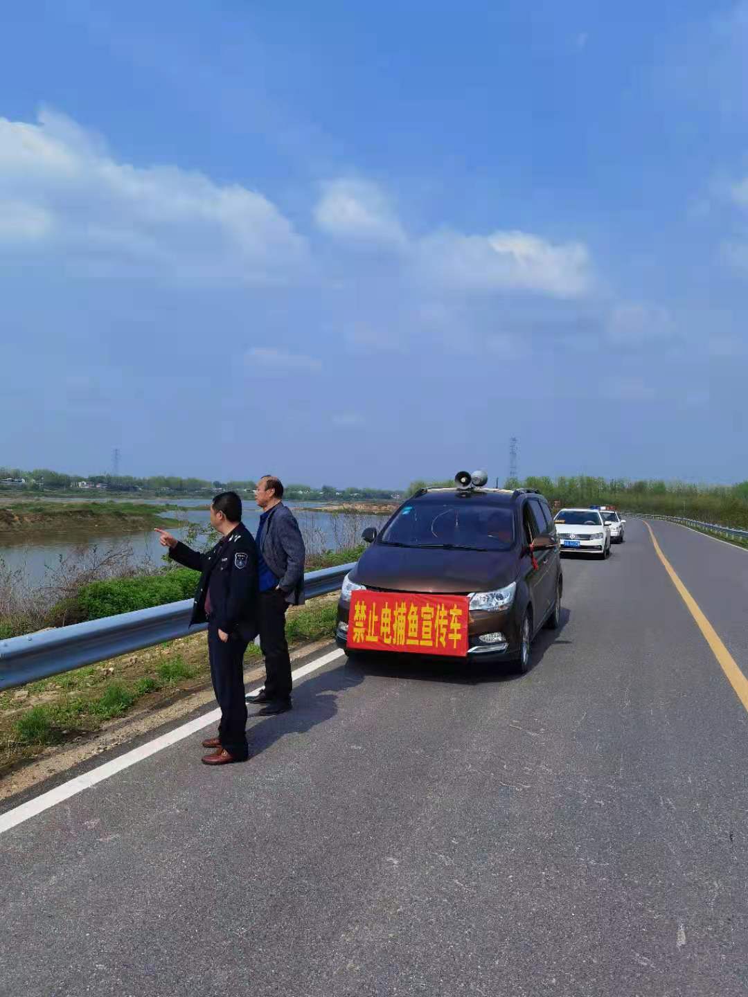 裕安区韩摆渡镇水利站工作人员,通过广播和张贴通告、悬挂标语、出动宣传车等多种形式广泛宣传渔业资源保护相关法律法规,对捕捞人员加强管理和教育。同时,广泛发挥群众的监督作用,设立举报电话、举报箱等畅通举报通道,充分发动群众主动监督举报,营造“非法电捕鱼人人喊打”的舆论高压态势。