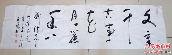 何云浩、王甫涛原籍霍山县漫水河人、现居城关,现均为安徽省书法家协会会员。两位老师曾分别供职于教育和司法部门,退休后一直专注西山文化研究,虽然两位老人已年届古稀,但对祖国优秀传统文化的传承与我展不余遗力,发挥余热。(文/图 刘伟)