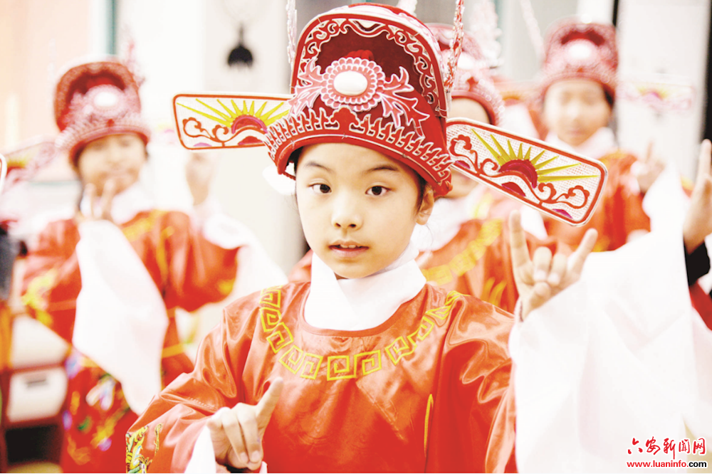 为进一步丰富校园文化生活,助力“双减”政策的落实,金安区人民路小学东校将非遗黄梅戏引入校园,同学们在金安区阳光艺术团专业老师的教授下了解黄梅戏的唱腔、动作、角色扮演要领等知识,零距离感受非遗戏曲的独特魅力。(皖西日报融媒体记者 田凯平 摄)