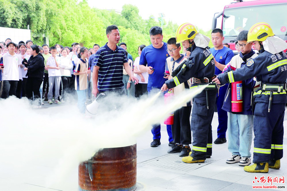 今年的5月12日是我国第16个全国防灾减灾日。5月9日,六安市第九中学开展“5·12”应急疏散演练暨消防技能培训,模拟地震来袭时组织安全紧急疏散、应急救援演练,进行避险逃生和自救互救技能等科普宣传,以增强师生防灾减灾意识和灾害应急自救避险能力。图为裕安区消防救援大队消防员在指导市第九中学学生体验、使用消防器械。(记者 田凯平 摄)