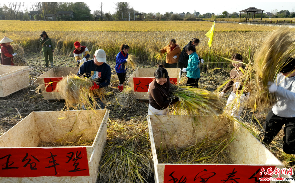 11月23日,裕安区江家店镇林水寨生态园举办割稻比赛,来自上海、广东、山东、江苏、福建等13个省(市)及六安经济技术开发区企业家联盟、六安市青年企业联盟、裕安区女企业家协会等三十余名企业家老总带领数百名员工参加比赛,开展深度农耕体验,收获秋实,播下希望。活动进一步引导全国各地更多更有实力的企业助力我市乡村振兴,将资源优势转化为高质量发展优势。