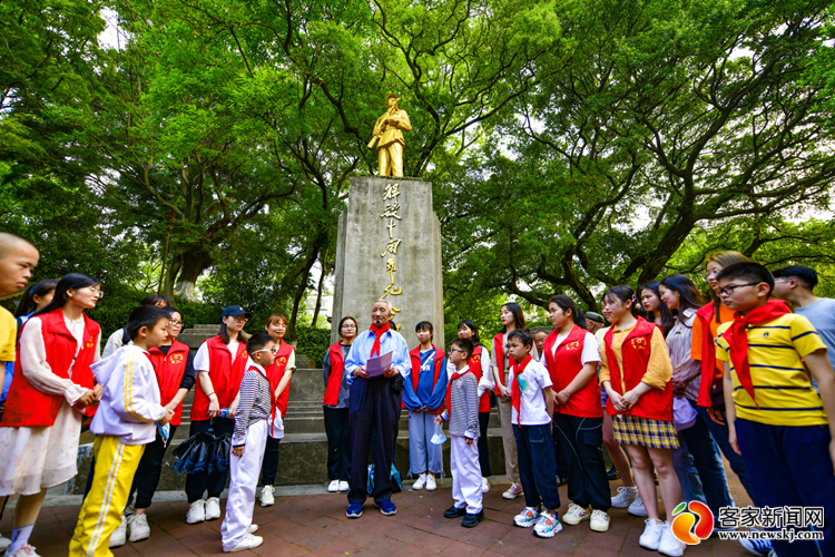 章贡区老党员江鉎良在赣州公园向学生们讲述党的历史故事。胡江涛 摄