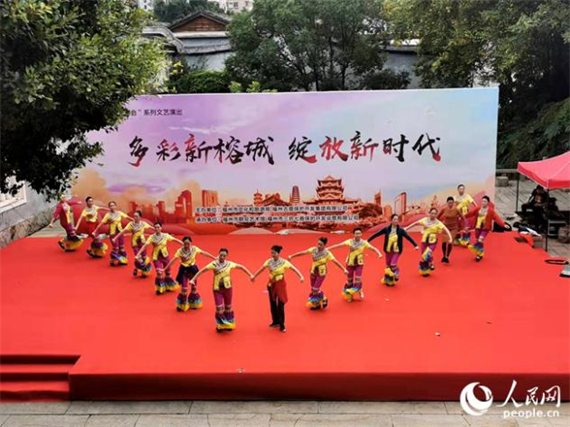 在三坊七巷中举办的文艺汇演。人民网 林晓丽摄2021年7月15日晚,在第44届世界遗产大会召开之际,一场沉浸式的演出在三坊七巷上演。当一位身着旗袍的曼妙女子,撑着一把油纸伞,现身街坊,一场穿越之旅揭幕。演出采用声光电等多媒体技术,结合闽剧表演、非遗展示等手法,带着观众一路寻找闽都“老时光”。