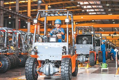 江西省高安市引导企业加快高科技研发和新技术转化,培育发展战略性新兴产业,助力经济高质量发展。截至目前,该市共有高新技术企业101家,科技型中小企业221家,涵盖装备制造、电子信息、新能源、新材料等领域。图为日前,高安市龙工机械有限公司员工在装配车间赶制叉车。