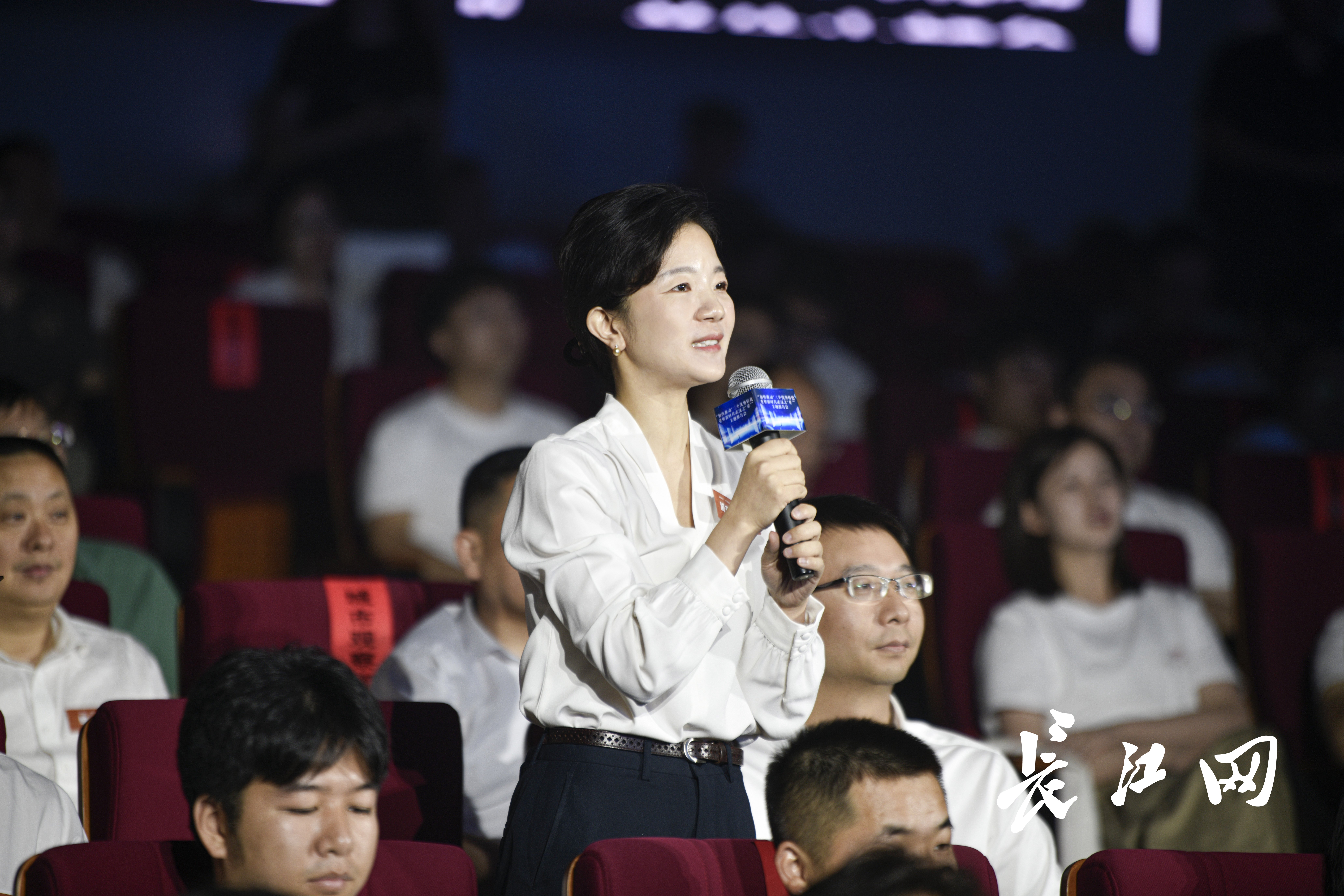 人民日报社湖北分社采编中心主任田豆豆作为“城市观察团”成员向中国信科集团党委书记、董事长鲁国庆提问。记者彭年 摄