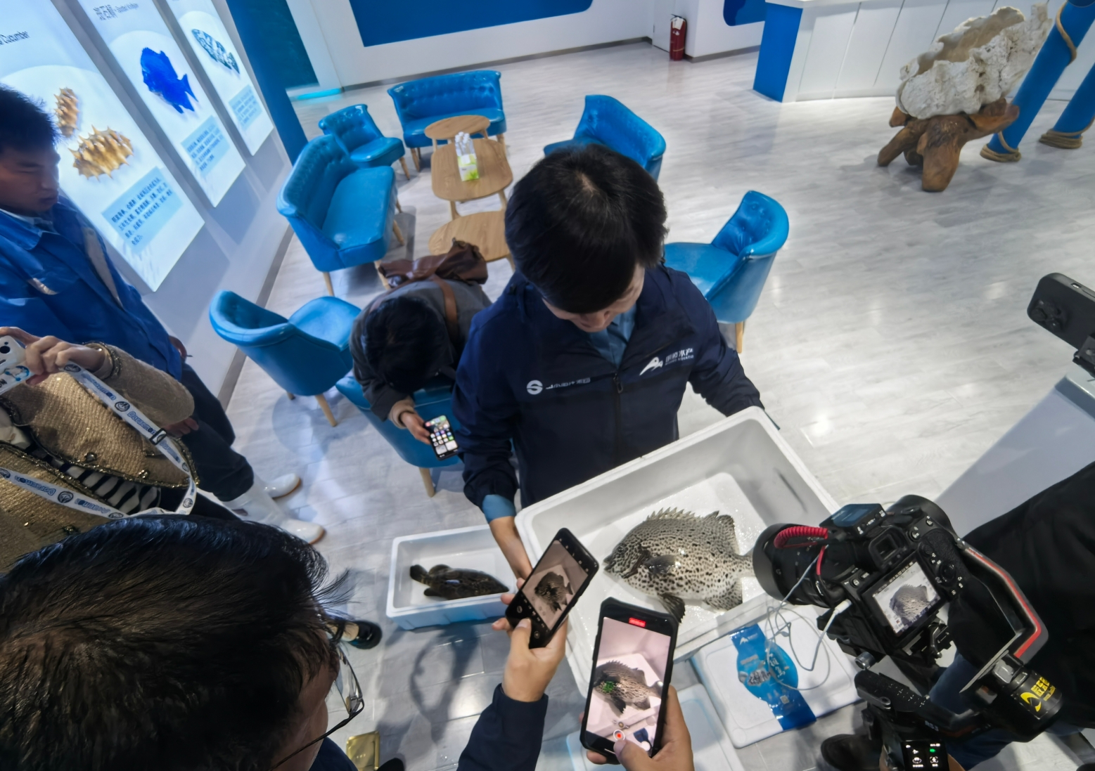 在基地的科研创新区,网络名人们详细了解了院士协同中心、中日水生生物健康服务中心等研发综合体的工作情况。这些研发机构不仅承担着科研项目,还积极推动科技成果转化,为烟台海洋渔业的可持续发展提供了有力支撑。