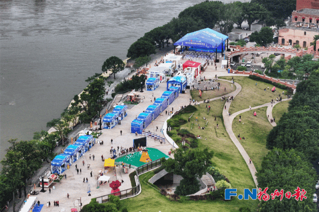 从今年8月起在烟台山、上下杭、三坊七巷等轮番上演、掀起热潮的街角音乐会,也在周末登陆了房展会现场。《七里香》《热辣滚烫》《稻香》……一首首熟悉的旋律令现场观众热血沸腾。热烈的氛围、多彩的舞台灯光和闽江两岸的璀璨夜景交相辉映。有奖问答环节更是将音乐会的氛围推向了高潮。