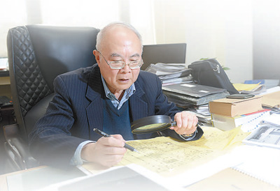 见到大家口中的“博士”,正值一个阳光灿烂的午后。透过办公室的门往里看,坐在书桌后的黄锡璆正拿着一个放大镜细细地查看图纸。见记者进来,已经79岁的老先生不顾腿脚不方便,马上起身相迎,并为房间的无处下脚而“道歉”。