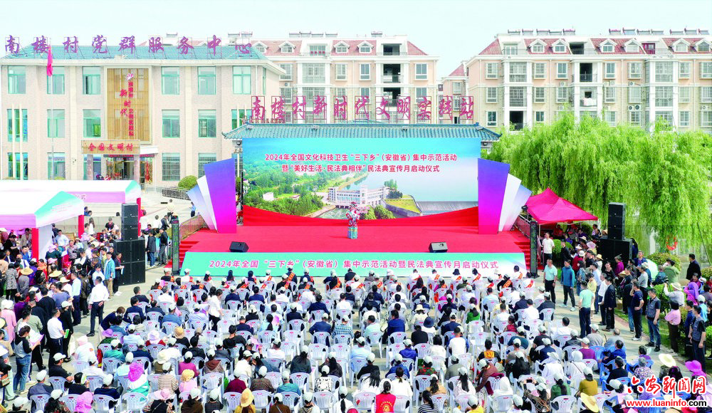 图一:4月25日,2024年全国文化科技卫生“三下乡”(安徽省)集中示范活动暨“美好生活·民法典相伴”民法典宣传月启动仪式,在裕安区苏埠镇南楼村举行。