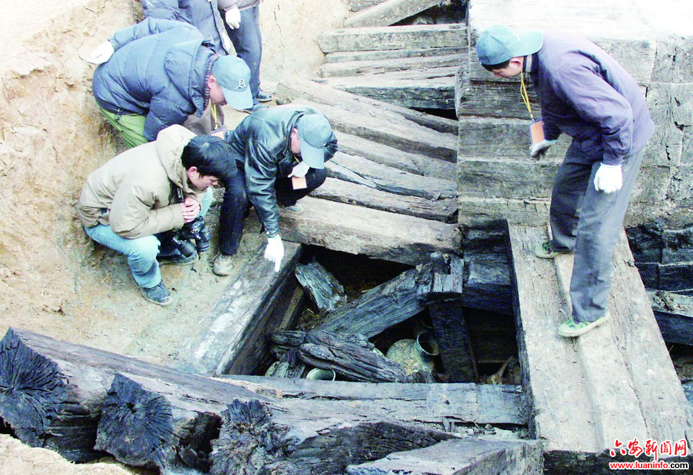 4月16日拍摄的经过修复后的“黄肠题凑”雏形现场。