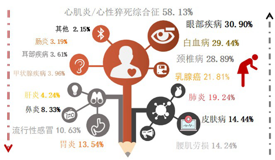 大学生最担心罹患的疾病类型分布(%)。廉思课题组供图