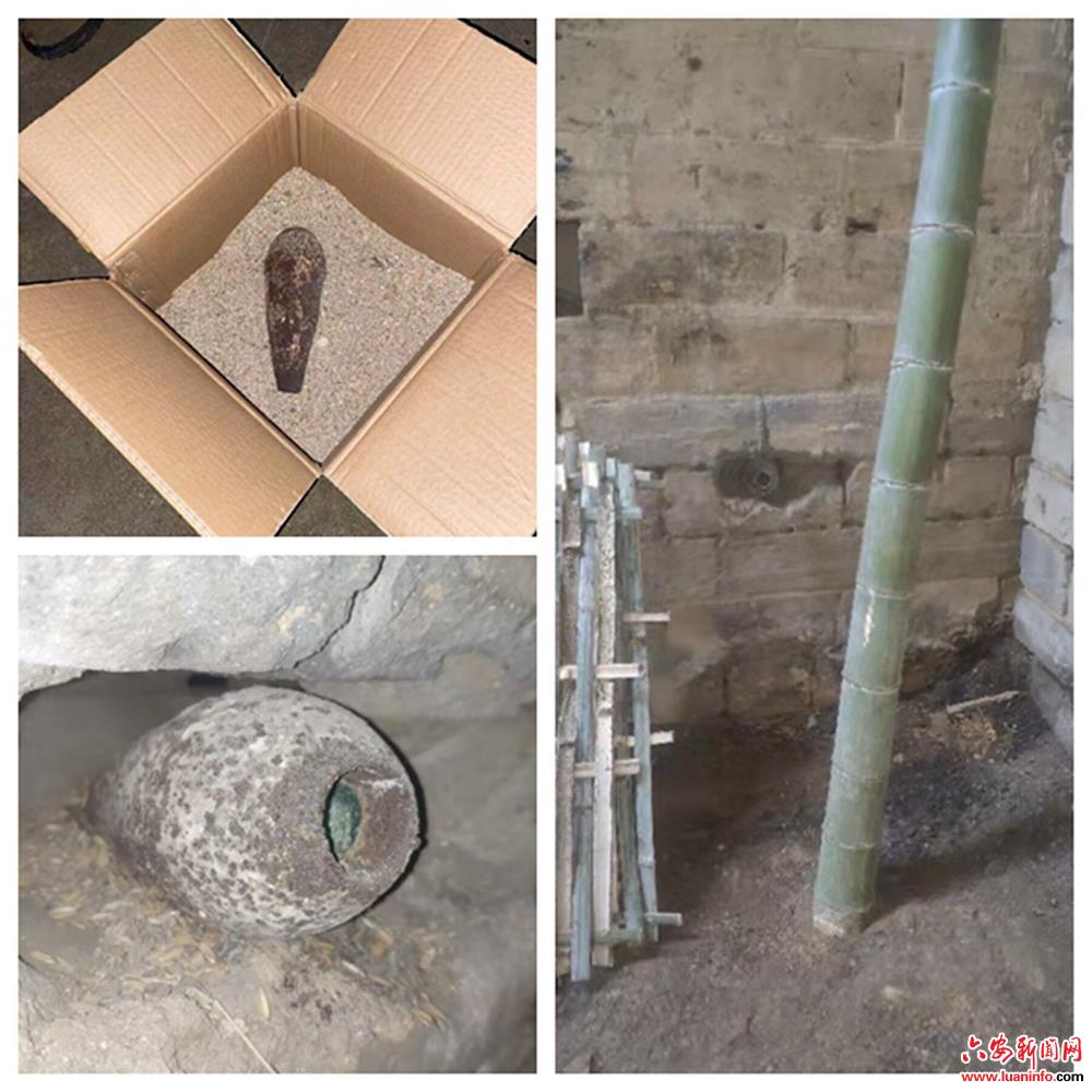 霍山县公安局治安大队接到霍山县上土市派出所来电称:在该辖区一个叫决心庵的寺庙。在进行翻修时,维修寺庙的工人在墙洞里发现一枚疑似废弃炮弹,接到报警后,上土市派出所民警迅速赶往现场进行防控,并将现场照片通过微信传到治安大队,“这是一枚82迫击炮弹”看到照片,有着多年危险品处理经验的王进副大队长一口判定。