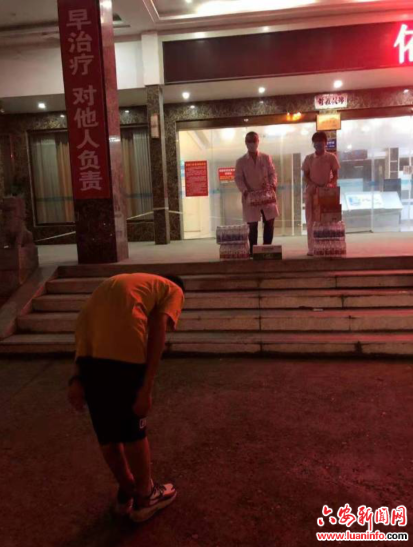 15日晚,家住文华家园小区的张同学是一名来自皋城中学初二五班的学子,得知四院医务人员再次奔赴抗疫一线的消息后,毅然拿出自己逢年过节的压岁钱买了若干食物和矿泉水,在父母的陪同下来到金安(九龙)发热门诊,将自己的一份心意交到一线医护人员的手中,并深深鞠躬致谢。
