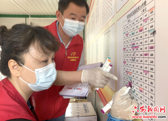 5月28日,金安区东市街道军民社区工作人员在对封闭管理的友谊北苑小区疫情防控期间当天住户摸排情况进行标记管理。根据新冠肺炎疫情防控需要,为精准摸排封闭管理小区住户情况,连日来,金安区东市街道军民社区在充分发挥党员干部、物业保安、网格员、楼栋长、志愿者等力量做好防控工作的同时,结合辖区封闭管理小区老、弱、病、残、孕、特殊群体(独居、儿童等)住户特点,创新制定“六色”动态图管理方式,每天将通过摸排走访获悉的居民健康情况及时进行按色标注登记,力争疫情防控科学施策,群众困难精准帮扶。(皖西日报融媒体记者 田凯平摄 )