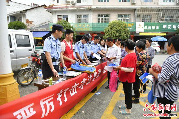 针对以投资理财为名的各类诈骗案件频发现象,霍山县公安、金融等部门为提升社区居民防范金融诈骗的意识,连日来开展了反金融诈骗进社区宣传活动。图为霍山县公安局漫水河所干警在集镇广场向居民宣传防金融诈骗知识。(刘伟)