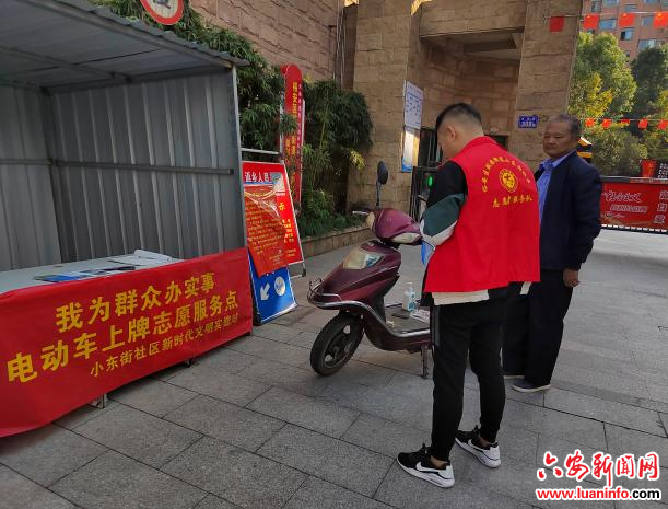 本网讯 为推动辖区居民电动车尽快上牌,近日,裕安区鼓楼街道小东街社区新时代文明实践站践行“我为群众办实事”活动,在辖区内开展电动车登记上牌便民服务活动。