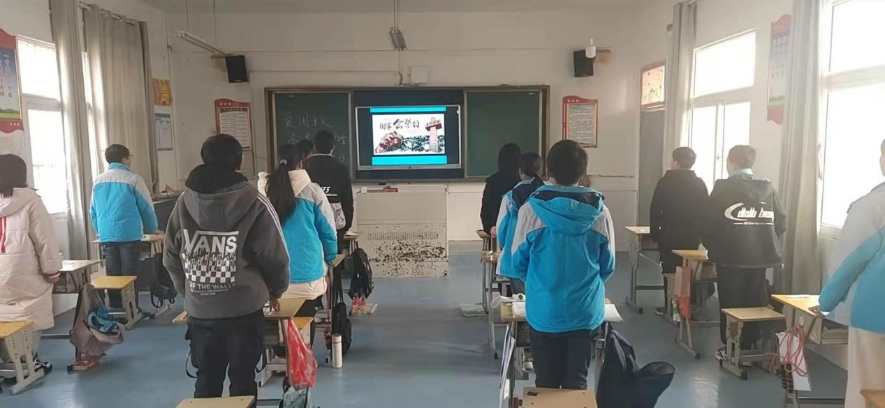 在升旗仪式结束后的国旗下讲话中,全体师生进行了一次以“了解历史,勿忘国耻;珍爱和平,振兴中华”为主题的爱国主义教育。根据年级特点,学校各班召开了内容充实、形式多样的主题班会。有的班级观看爱国主义影片;还有的班级老师对国家公祭日设立的意义进行深入浅出的讲解,引导学生深刻了解“国家公祭日”的内涵,激励学生勿忘国耻,振兴中华。