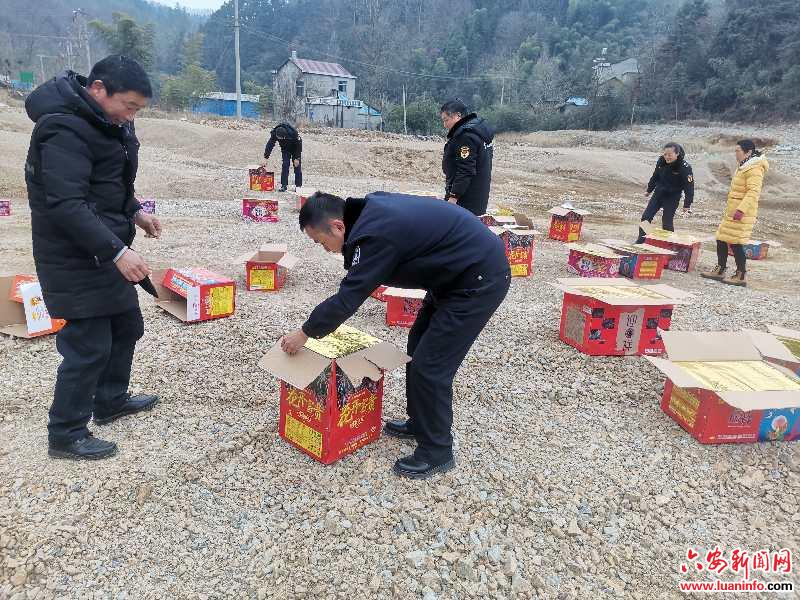 1月21日,金寨县公安局麻埠派出所联合麻埠镇执法大队组织开展集中销毁一批收缴非法烟花爆竹活动,保障群众生命财产安全,维护社会治安稳定。
