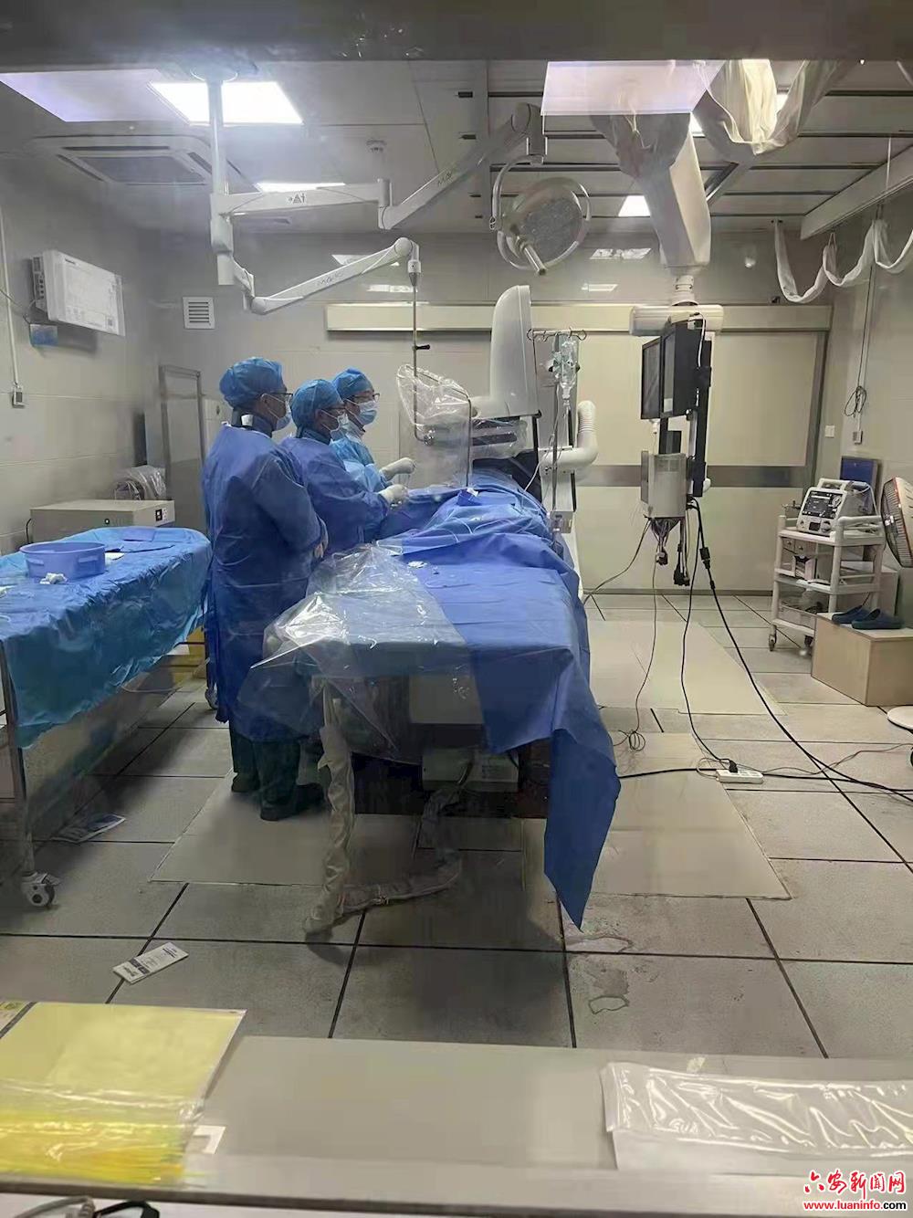 同一天,患者杨某,男,52岁,家住三十铺三东路,22时08分因“快速房颤”入住东院区普内科,28日01时43分突发胸闷、大汗等状况,血压下降至60/42mmhg,心率50次/分,复查心电图提示为急性下壁ST段抬高型心肌梗死,患者生命垂危。联系心内科积极启动导管室,该患者02时29分由120急救车护送至院本部急诊科。心内科孙自海主任介入团队提前布置,相关人员提前到位,凌晨3时13分冠脉造影右冠中段闭塞,前降支轻中度病变,随后开通右冠脉植入一枚支架,从病人到达导管室到PCI手术完成时间在47分钟,术后患者安返病房,恢复良好。