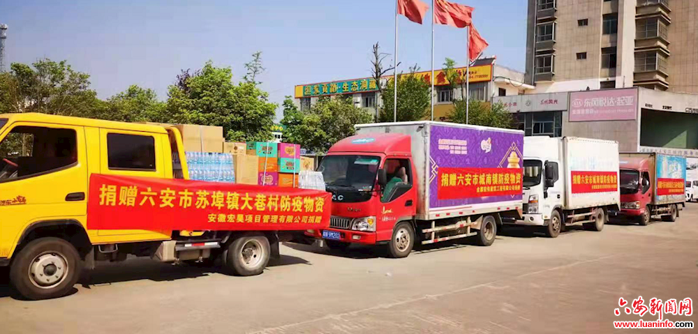 近日,位于金寨县的安徽宏昊项目管理有限公司向裕安区城南镇、苏埠镇捐赠医用一次性口罩、消毒液、防护服、方便面、矿泉水等防疫物资和生活用品,价值 6 万余元,为抗疫一线送去爱心。