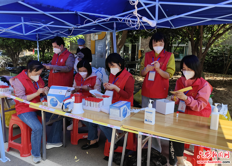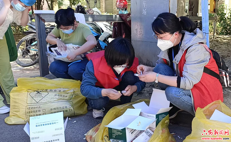 王庆是裕安区交通局交战办副主任,在疫情防控一线上,她既当指挥员又当战斗员,她负责带一组志愿者参加一线工作,靠前指挥,协调封控小区内各种繁杂的琐事,为行动不便的独居老人买药、为孩子送奶粉……她的身份一会儿是防疫政策的“宣传员”,一会儿是防疫卡点的执勤员,一会儿又是物资配送的“搬运员”……“请大家带好口罩,保持一米间隔,准备好核酸检测登记码(安康码)”,在核酸采集现场,裕安区交通局妇委会主任陈玲拿着小喇叭在维持现场秩序。前些日子,由于高温,封控小区的全员核酸采样在晚上进行,从晚上六点到深夜十一点,陈玲的红马甲已被汗水湿透,手臂上、腿脚处被蚊虫叮咬起无数个红包,都全然不顾。她帮助行动不便以及无法操作智能手机的老人、婴幼儿、上网课的学生进行信息采集,实现特殊群体即来即测即走,尽量减少接触时间,用细致的服务方便他们安全、快速的核酸采样。“你们上报的数据准确吗?请马上核实一下重新上报”,裕安区交通局办公室工作人员王蕾一手拿着手机,一手滚动着电脑鼠标,一刻不停地收集统计数据,从4月4日以来,“抓紧、必须、马上”这些“高频热词”在她接打电话和交办任务的时候此起彼伏,她从来没有说过一句“我在家隔离,不能办公”。