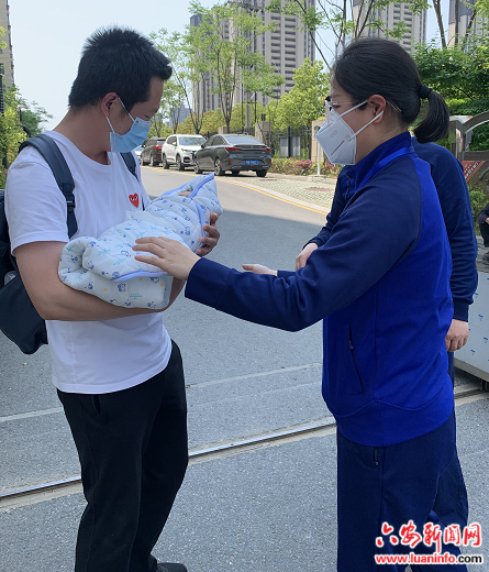 4月11日11时,市区龙泽府第小区门口疫情卡点出现暖心一幕。在得知受疫情管控原因一对年轻夫妻无法离开小区去接回住院的婴儿这一情况后,吴丹、程磊两名消防志愿者迅速向上级汇报、领受任务,驱车至医院。在落实消毒、核酸检测等疫情防控措施后,两人从医护人员处接过婴儿,将婴儿送到小区。