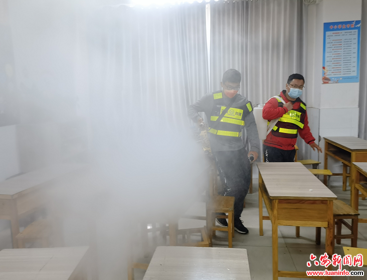 为构筑坚实有效的安全防护网,确保全区各类各级学校(幼儿园)分批有序平稳复学,裕安区教体局严格落实校园疫情防控各项举措,联系裕安区蓝盾救援队出动30余名队员,动用21台消杀设备和8辆专业车辆,分成四个消杀小组,分别从青山乡、独山镇、江家店镇、单王乡所在学校开始消杀作业,按照分步实施、步步落实的策略,做到所有学校“全覆盖、无死角、无盲区、无空白”。采用地毯式消杀方式,严格按照卫生消杀管理的标准规范操作,分别对各校(园)教室、办公室、餐厅、操场、卫生间等重点学习生活区域和场所进行全方位无死角的消杀,对师生需要使用的、可能触碰的区域和物品逐一实施消杀。