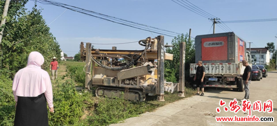 2022年8月18日下午两点,远从浙江某工地驶来的两辆载着打井机械的工程车停在了安徽省舒城县桃溪镇河东村任庄组的“村村通”水泥路上,工人们正马不停蹄的从工程车上卸下打井机械,挪运至需要打井的田块田埂位置。此时太阳正火辣辣地炙烤着大地,水泥路晒得烫脚。室外气温超过了40℃。但是,现场人员全然顾不得这些,河东村书记任替祥和村文书汪迎菊现场协调,维持秩序,帮助搞好打井机械安装。黄豆大的汗珠顺着脸颊流向衣服。这时的他们一心想着尽快安装好机械,好让这些机械马上打井,让新打的井马上出水,浇灌庄稼。
