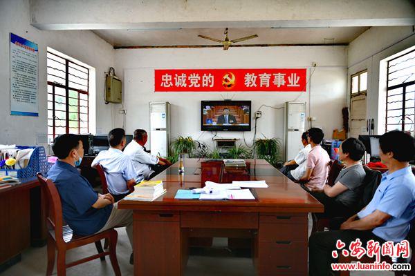 5月22日上午,老区霍山偏远学校教师正在集中观看全国“两会”直播盛況。