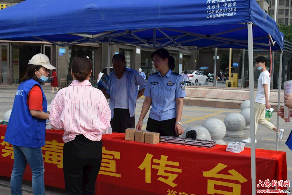 6月1日上午,裕安公安分局禁毒大队联合平桥派出所以及六安市乐仁公益组织,在龙河路天筑丽景小区门口开展“6.1”禁毒宣传活动。