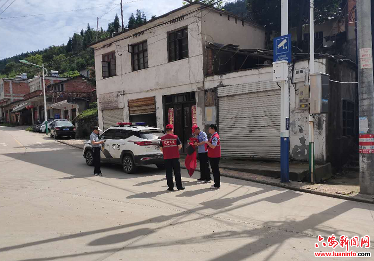 7月7日,麻埠派出所组织辖区江淮义警志愿者,与民警深入辖区开展文明城市创建活动。