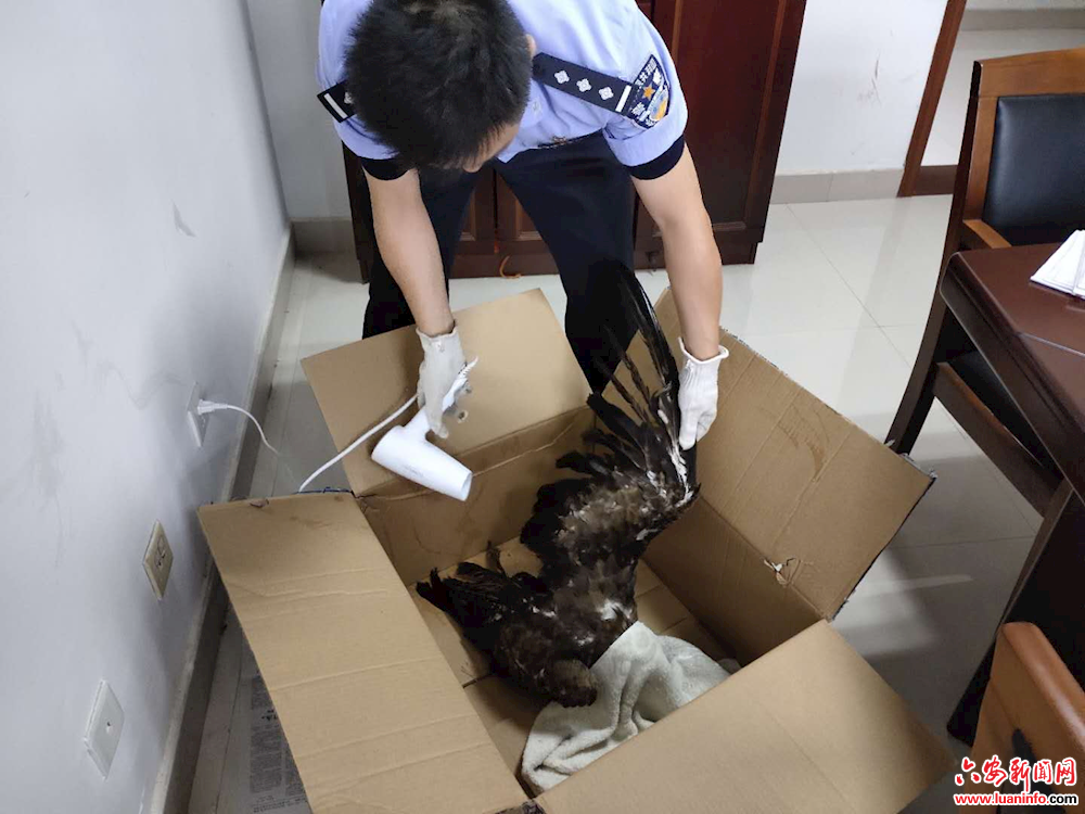 7月14 日14时许,金寨县公安局麻埠派出所接到群众报警称:其在响洪甸水库水面上发现一只落水老鹰,可能是国家级保护动物,请民警前往查看。