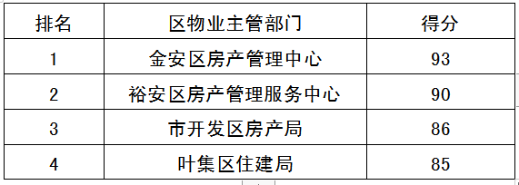 (负责指导金安区、裕安区、叶集区、市开发区对物业公司履职情况和城区小区创建情况的考核,负责对金安区、裕安区、叶集区、市开发区物业管理主管部门和城区建筑工地围挡的考核)