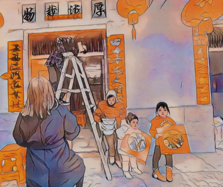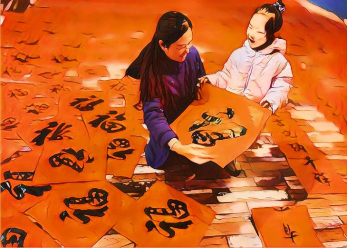 “新年纳余庆,嘉节号长春。”妈妈说这是中国最早的春联。春节贴春联是传统风俗,妈妈说有一千多年历史了。现在很多家庭喜欢买印刷的春联,而我更喜欢手写的春联。妈妈说,过去农村读书人少,每年春节前夕,会写毛笔字的读书人特别忙,他们要为左邻右舍写很多的春联,所写的内容大多是现场创作的,而且往往与这个家庭相关。